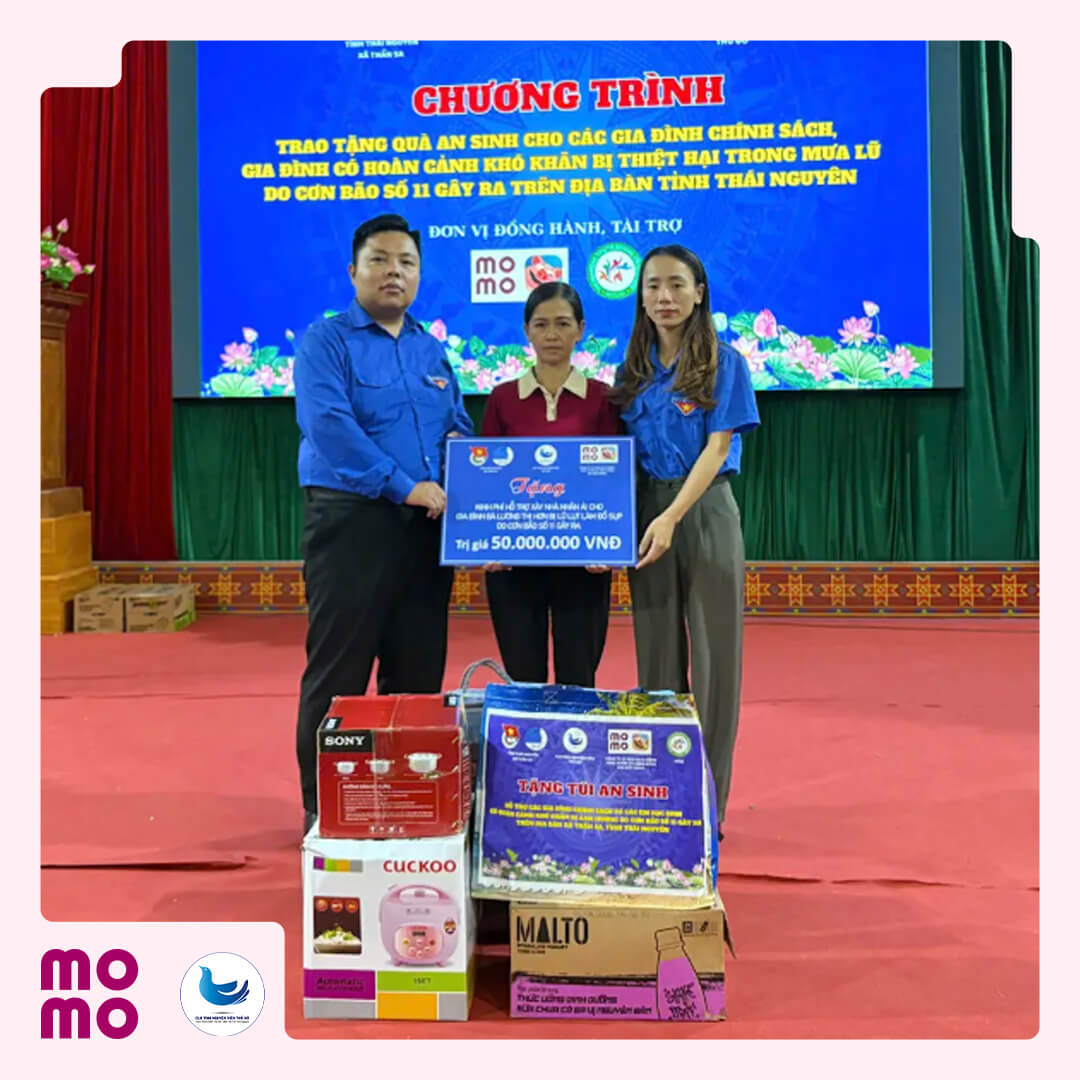 Với tấm lòng và sự chung tay của cộng đồng làm việc tốt MoMo, chương trình đã gửi đến 50 hộ gia đình những phần quà thiết thực gồm: túi quà an sinh, bộ xoong nồi, chăn ấm và phong bì hỗ trợ, mỗi phần trị giá 2 triệu đồng. Bên cạnh đó, dự án cũng đã trao kinh phí xây nhà trị giá 50 triệu đồng/hộ cho 3 gia đình có nhà cửa hư hỏng nghiêm trọng: bà Lương Thị Hơn, ông Dương Văn Sinh và bà Lý Thị Sống. Tổng giá trị hỗ trợ trong đợt này đạt 250 triệu đồng.